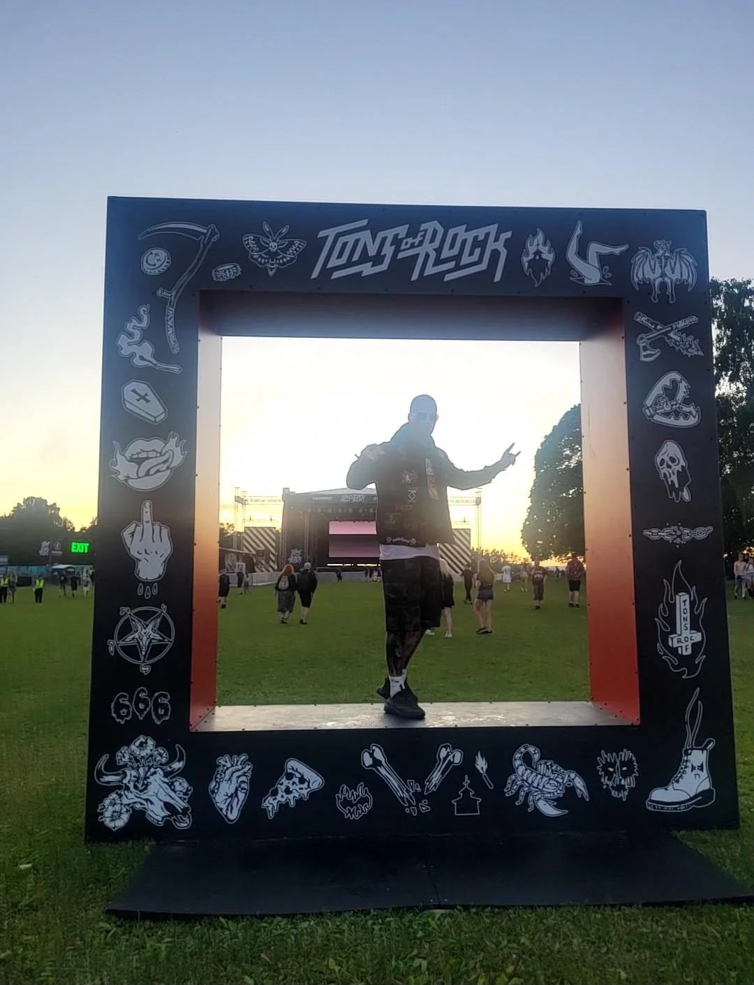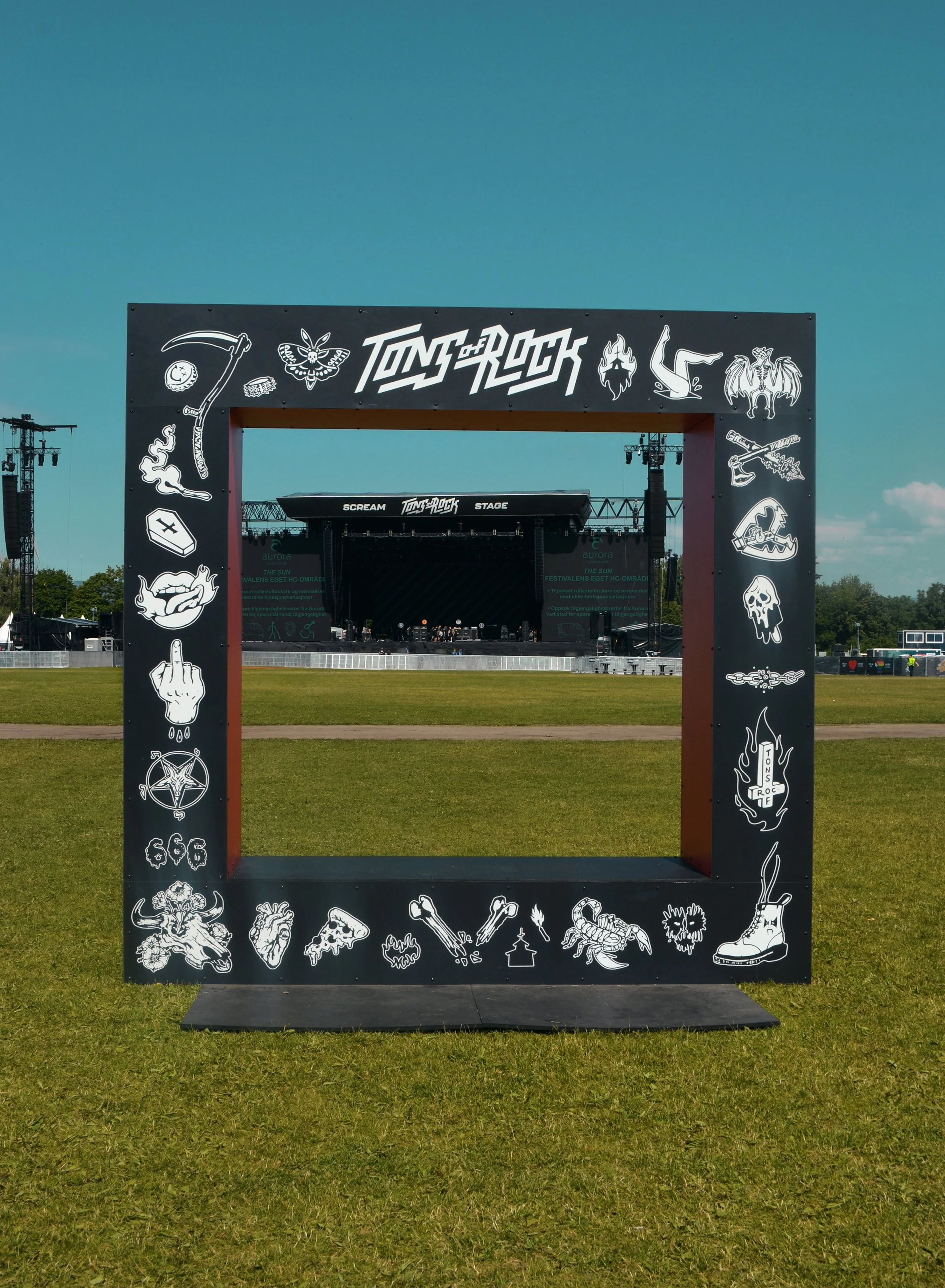 Bilderammene sto to steder på festivalområdet; begge plasser slik at du får en scene i bakgrunnen av bildet ditt. Illustrasjonene på rammene er tegnet av meg og er inspirert av rock, punk og metall; hovedsjangrene som utgjør musikken som spilles på festivalen.